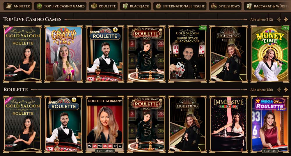 Live Casino Bereich bei Lanista