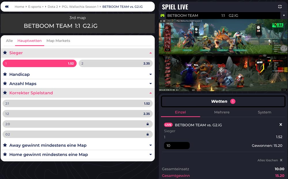 - Umfangreiches Wettangebot mit vielen Randdisziplinen