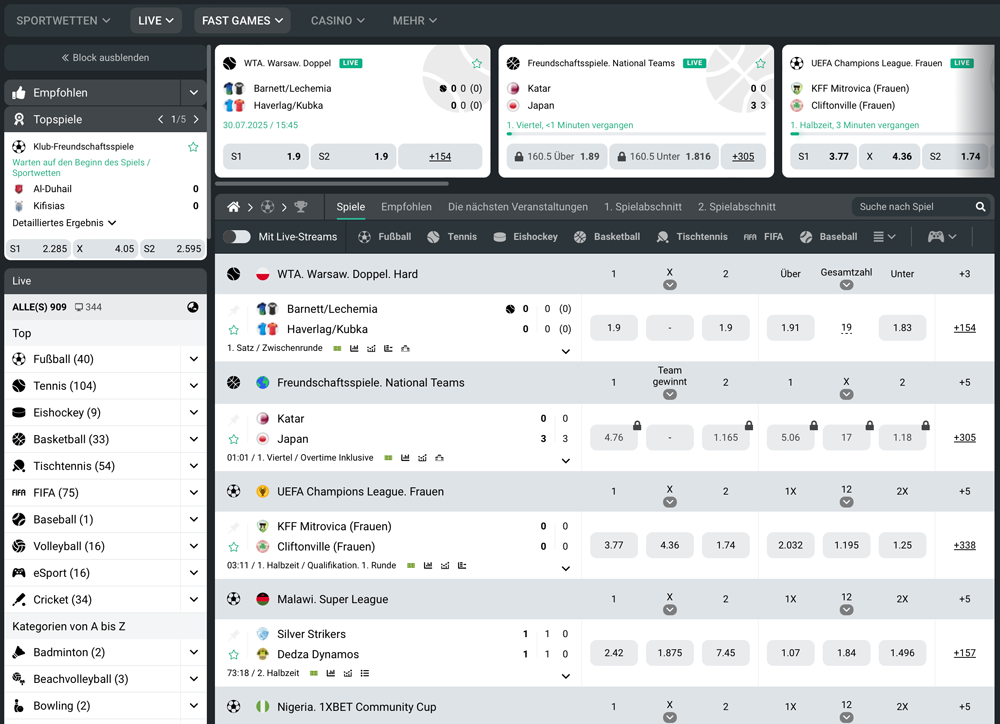 - Riesiges Angebot mit weit über 50 Wettkategorien